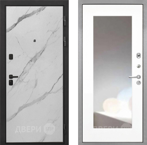 Входная Дверь Интекрон (INTECRON) Профит Black Мрамор Арктик ФЛЗ-120-М Зеркало Белый матовый 860x2050 мм
