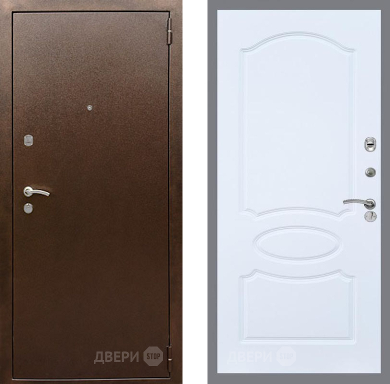 Входная Дверь Рекс (REX) 1А Медный Антик FL-128 Силк Сноу 860x2050 мм