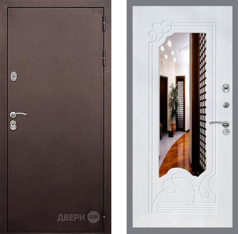 Входная Дверь Стоп КЛАССИК Медь ЗкркалоФЛ-147 Ясень белый 960x2050 мм