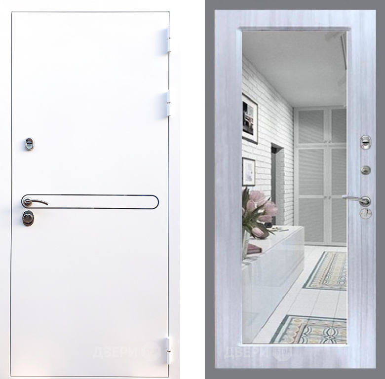 Входная Дверь Стоп Лайн Вайт Зеркало Сандал белый 960x2050 мм