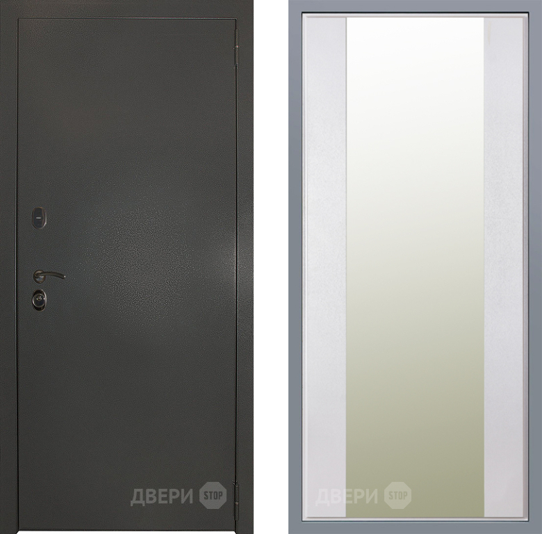Входная Дверь Заводские двери Эталон 3к антик серебро Зеркало Макси Белый шелк 960x2050 мм